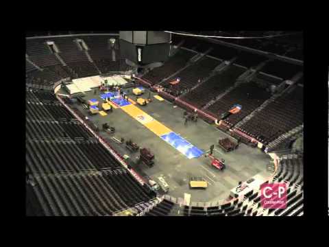 I did tear-downs and set-ups at the Oregon Convention Center back out in Portland (you would't believe the monstrous mess a major annual flower show can leave behind), but I've never had to change a floor over, between major televised professional sporting events each accommodating two separate (well-)paying audiences of up to 20,000 people, in such a small turnaround time (under three hours).